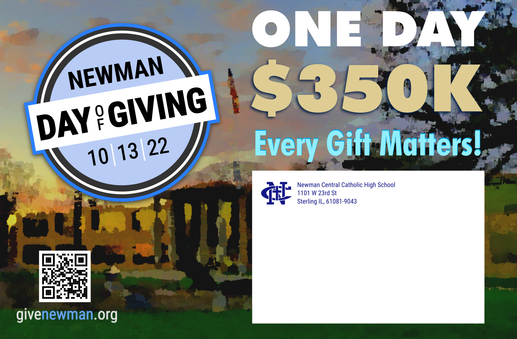 Newman made a massive change in how it raised money for its operating budget in the 2021-2022 school year. Instead of transactional things (like raffle tickets and having students sell a certain number of items), Newman started a Day of Giving campaign to build a relationship with its community and celebrate its mission and vision with that community.